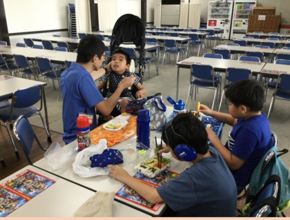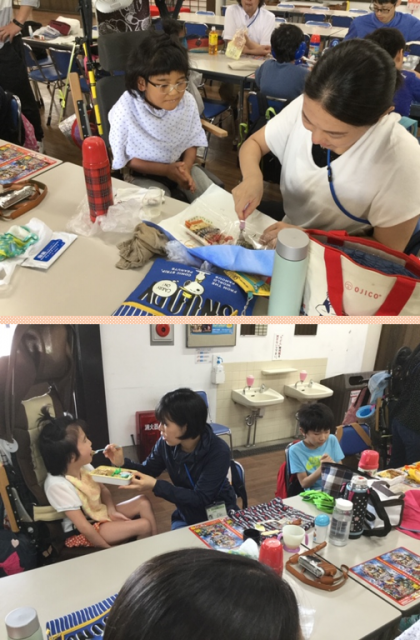 広くて涼しい休憩所で、家庭から持参のおいしいお弁当を食べました!