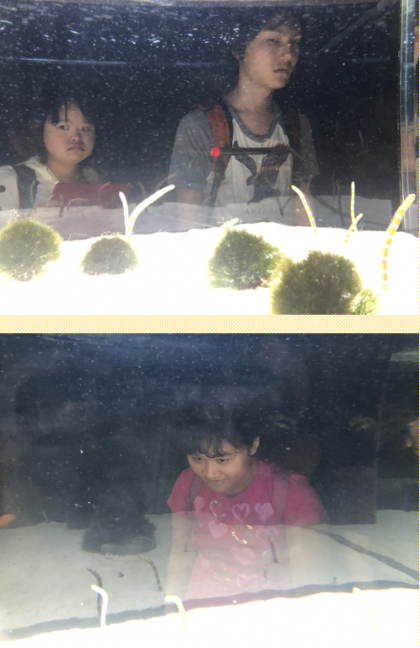 事前学習で調べた生き物を探して写真を撮りました。自分の好きな生き物を見つけると笑顔になっていました。