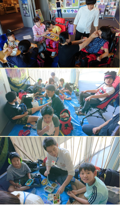 昼食、お弁当をおいしくいただいています。