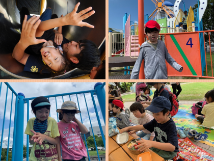 緑の広場を”制覇”できました!また,ものすごく広い芝生スペースで指導者や友だちと一緒に