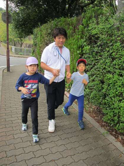 涼しい風が吹く中,みんなで学校の周りを歩きました。