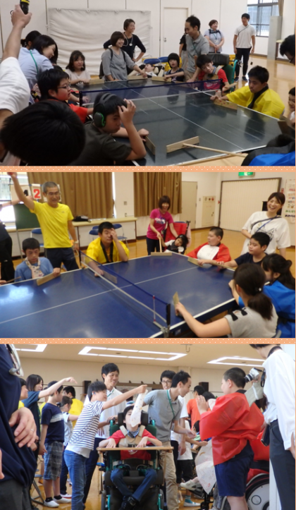 それぞれの学校のダンスでは手を繋いで踊る姿や卓球バレーではネットをはさんで交流を楽しみました。