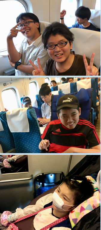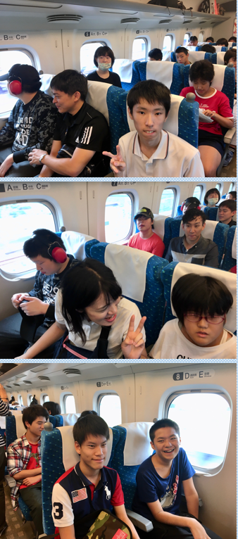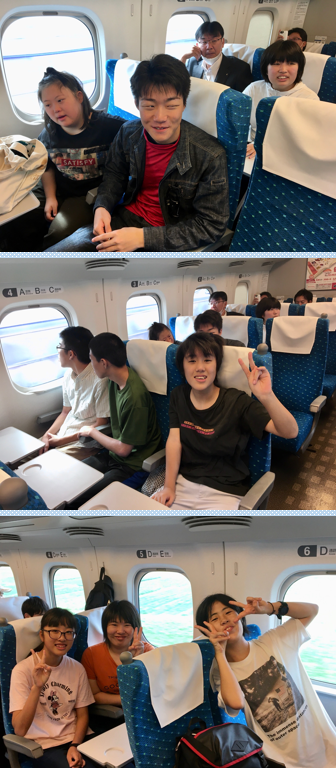 新幹線に乗るとすぐに、「カラオケ!」と言っている生徒がいます。
