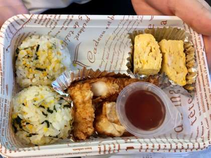 お母さんがお弁当を作ってくれました。私は、昨日、調理実習で卵焼きとおにぎりを作ったので、お弁当のおにぎりは自分で握りました。