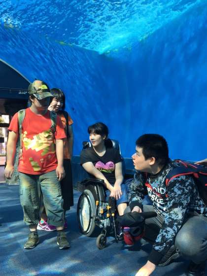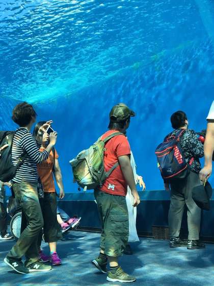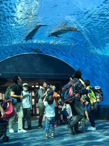 ドルフィンファンタジーでイルカのトンネルを通っています。