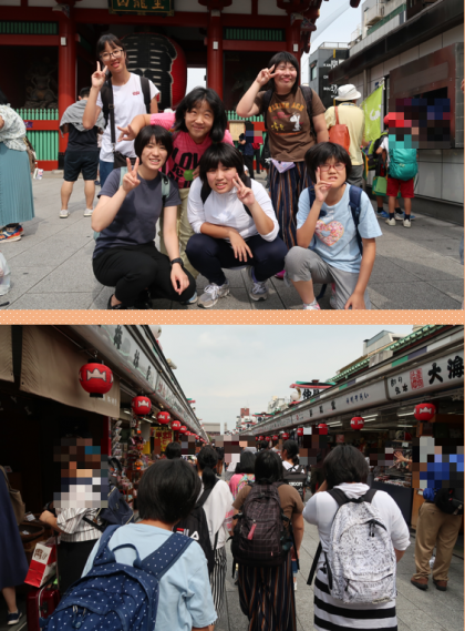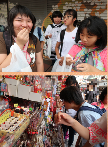 ルール・マナー2グループは浅草寺に行きました。お店がいっぱい並んでいて、食べた物がたくさん!