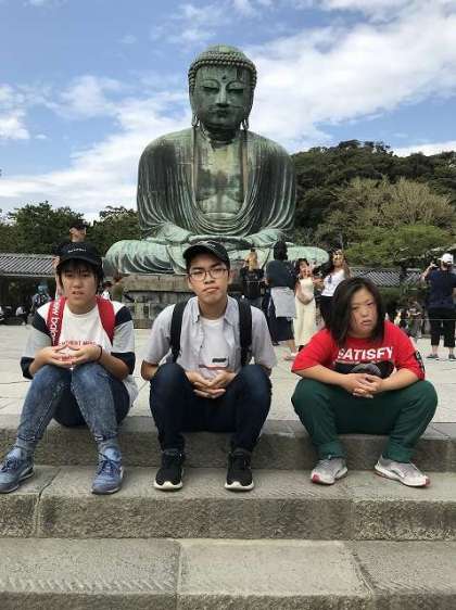 高徳院の大仏では「カッコいい顔やなー」と大仏に見入っていました。