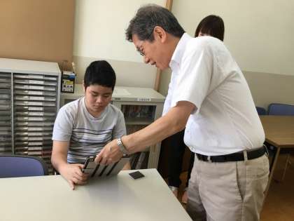 9時過ぎから16時半頃まで,PECSや構造化された指導について,支援部に相談依頼の出ている30名中25名の児童生徒の授業の様子を観ていただき,放課後,各学部の担任・担当の先生方にお話をしていただきました