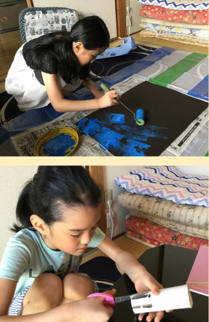 造形活動では「お話の絵」に取り組みました。ローラーやトイレットペーパーの芯を使って楽しく活動できました!