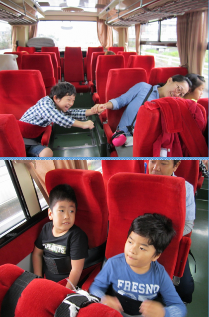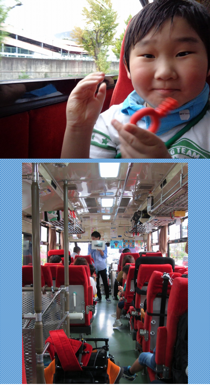 バスの中では,「バスに乗って」の歌を歌ったり,名前呼びをしたり