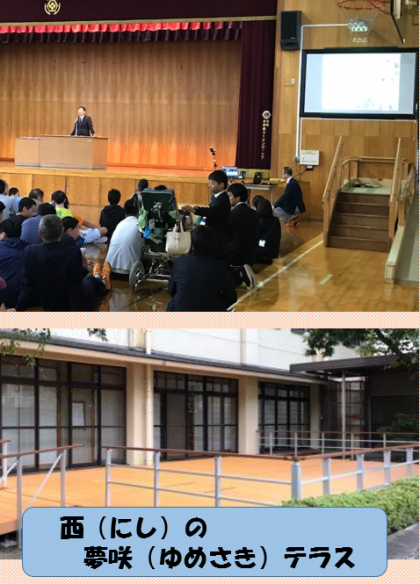 そのあと,生徒会が名前を募集していた,京都桂川ロータリークラブ様から寄付していただいたウッドデッキの名前の発表があり,名前を応募した生徒が,なぜその名前にしたのかを発表しました。ウッドデッキの名前は『西(にし)の夢咲(ゆめさき)テラス』です。