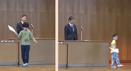 始業式のあと,作品展や美術展,スポーツ大会の表彰式を行ないました。