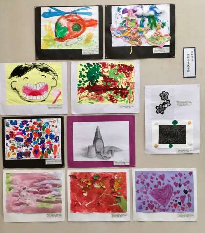 姉妹都市作品展に本校児童生徒の作品が展示されています