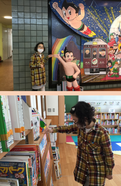 校内の先生方に挨拶をした後,校内を見て回り・・・図書室で本を借りました。