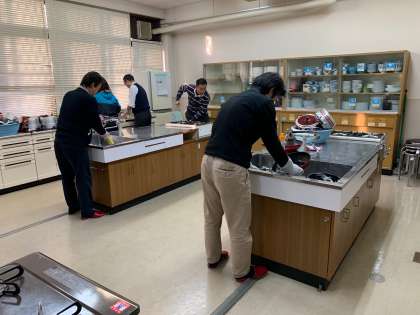 12月5日(木),オムロン株式会社の皆さんが,今年度3回目の社会奉仕活動に来て下さいました。今回は,調理室の清掃をしてくださいました。調理器具を丁寧に洗ってくださったり,流し台,床,黒板等を掃除していただいたり,普段はなかなかできないところが大変綺麗に,ピカピカになりました。