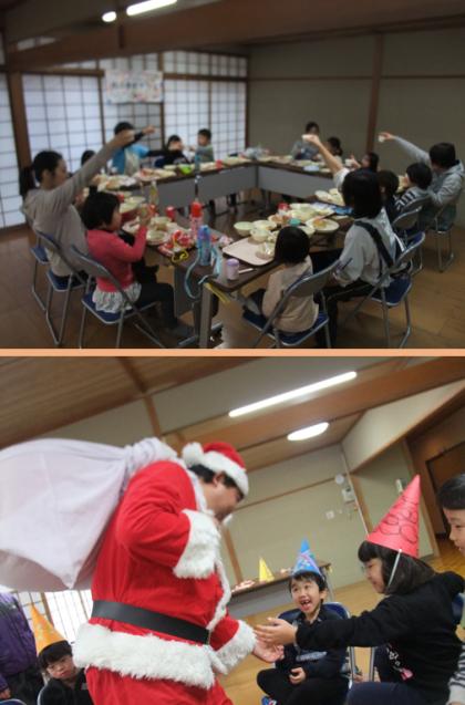 一緒にプレゼント回しをして,みんなニコニコでサンタさんと握手しました。