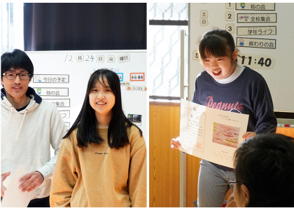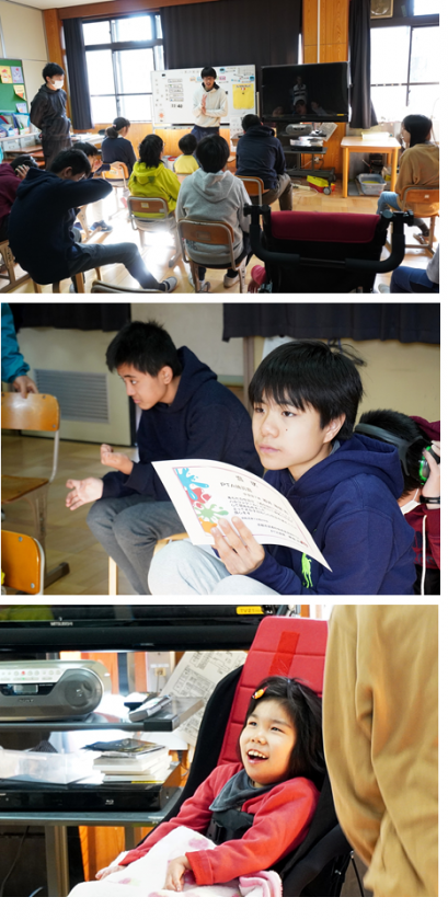 中学部1年生は,TV放送による全校集会の後,学年集会をしてました。学年の友達の前で,あらためて表彰状を受け取っていました。