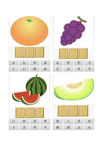 今回は,2文字〜3文字の食べ物の名前を,一文字一文字の音(音素)の組み合わせとして覚えてみましょう。