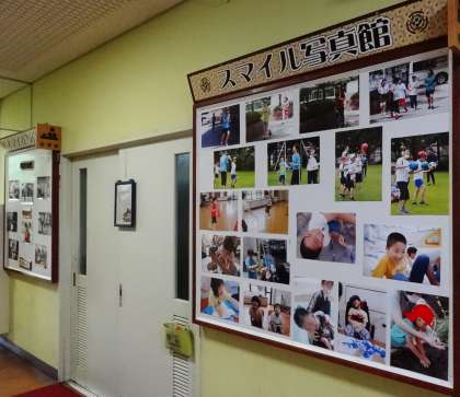 ※校長室前に「スマイル写真館」を設置しています