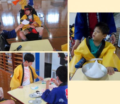 的当て・かき氷・お面つくり・足水と4つのコーナーをまわりました。