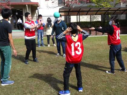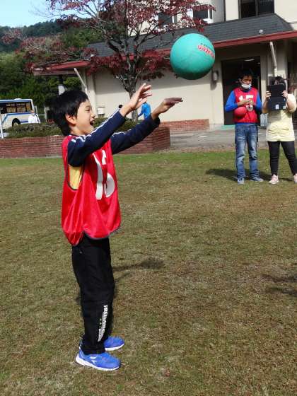 ソフトボールチームの写真を撮影していると,「ライバルチームがやってきた」と生徒が教えてくれました。ライバルチームはバスケットボールをしていました。