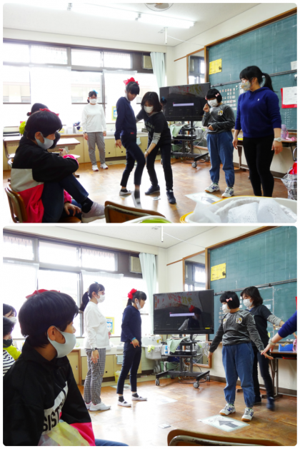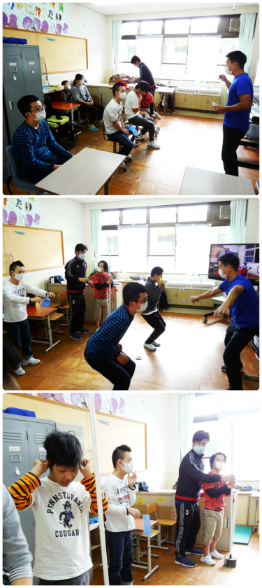 高等部1年生は,3グループに分かれて,ステージ発表の練習をしていました。最初に,ビデオを見て動きを確認し,実際に動いて練習をしていました。