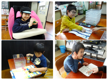 文字の学習・数量の学習・楽器演奏・発声練習・時計の学習・歩行練習・分類の学習など,個々の課題に応じて取り組んでいます。