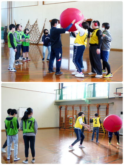 高等部のスポーツユニットは体育館で,「キンボール」をしていました。
