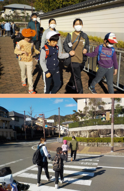 誰と手をつなぐか,どの順番で歩くか等みんなで確認した後,学校周辺を探検しに,出発!