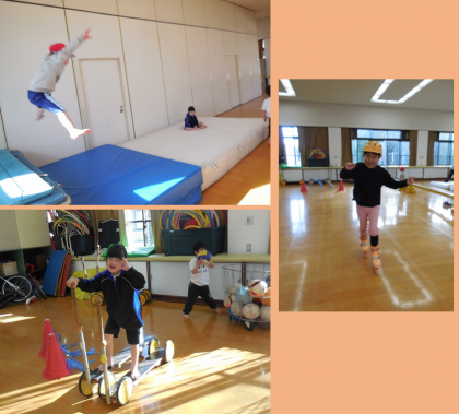 10分間のランニングの後,ゆれあそびやインラインスケート,バスケットボールや縄跳びなどを楽しみました。