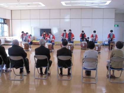 その後,高等部生徒が感謝の気持ちを込めて,力強い和太鼓演奏を行いました。この高等部の和太鼓演奏の様子は,下記より動画をご覧いただけます。