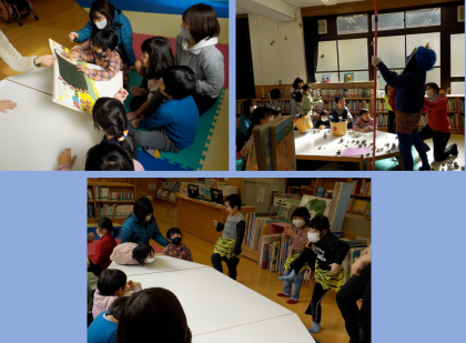 当日は,「まめまきバス」の読聞かせを聞き,「おには〜そと!ふくは〜うち!」の掛け声の練習をしたり,鬼のパンツを穿いて,「鬼のパンツ」のダンスを踊ったりしました。