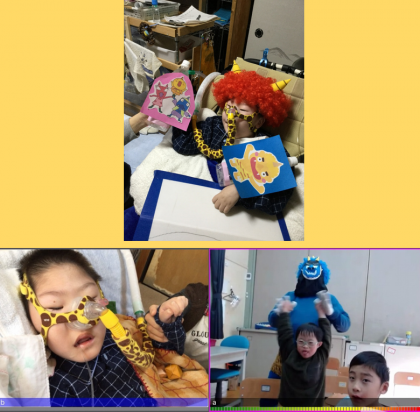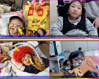 学校の友だちとテレビ会議でつながり、一緒に「おにのパンツ」を踊りました。
