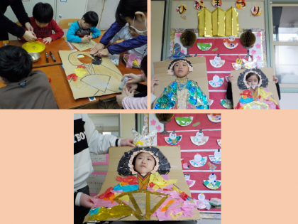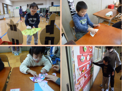 みんなで協力して作ったお雛様を飾って,今日はたのしいひなまつり♪
