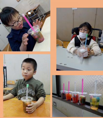 つくってみようの時間でも「ミックスジュース」をつくりました。