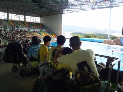 イルカショーでのりのりです。