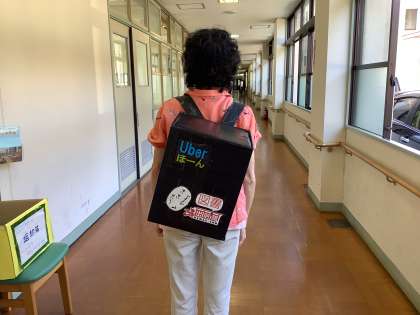 本校では「コロナ禍の今こそ子どもたちの読書機会を増やしたい」という思いの下,図書館主任と学校司書を中心に読書活動を推進しています。学校司書が絵本を詰めた「ウーバーほーん」というリュックを背負って教室を回り,児童生徒の生活年齢に合った本の読み聞かせをしたり,読書週間中には図書委員会の生徒が自ら作成した読み聞かせ動画を校内テレビで放映するなどの取組を実施し,貸出冊数はコロナ禍前から倍増しています。