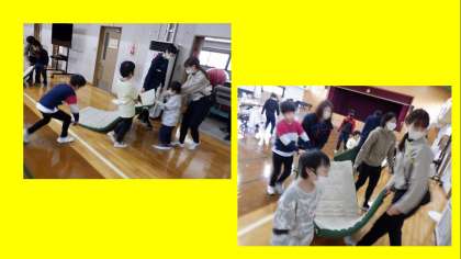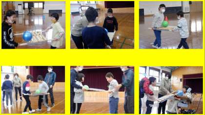 前半のゲームでは、ボール運びリレーをしました。ボールを落とさないように、仲間に声をかけたり、ボールが落ちないように姿勢を工夫したりするなど、子どもたち自身で試行錯誤しながら活動する姿が見られました。仲間が頑張っている時には「○○さん、頑張れ。」など、声かけをする姿も見られました。
