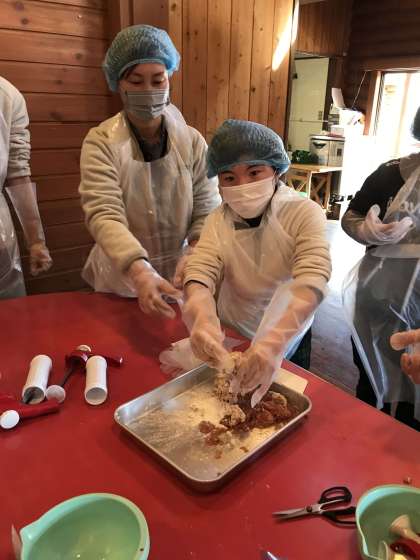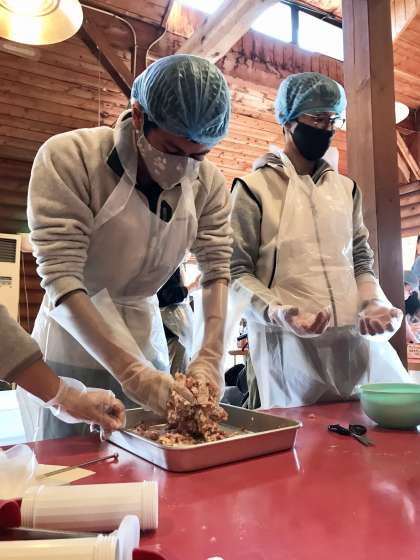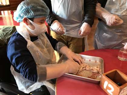 お肉やスパイスなど材料をよく混ぜ合わせます。