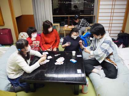 各部屋でトランプをしたり,しおりを書いたり,お土産を買ったり,明日の荷造りをしたりと思い思いに過ごしました。