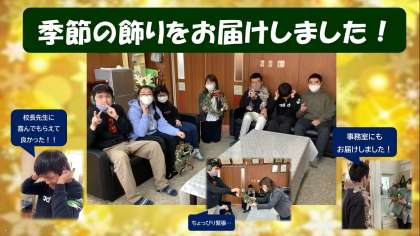 高等部学年ライフBでは,コミュニケーションや役割活動に関しての学習を行っています。今日はその一環として,校長室や事務室に手作りの季節の飾りを届けに行きました。