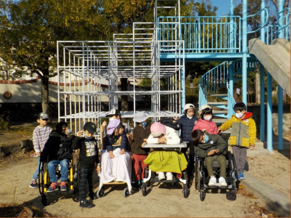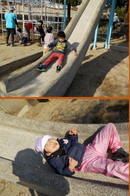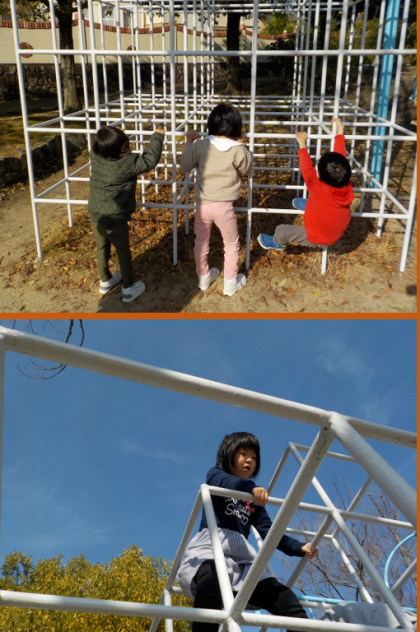 学校から少し離れた公園にはじめて行ってきました。片道30分の道のりも上手に移動できました。大きなジャングルジムと滑り台が大人気☆体をしっかり動かして遊びました!