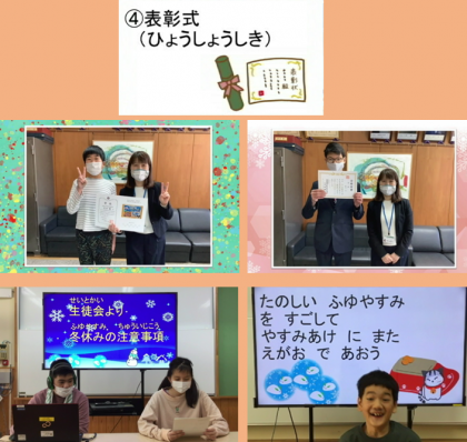 冬季休業前の全校集会を,それぞれの教室で動画を見るかたちで行いました。