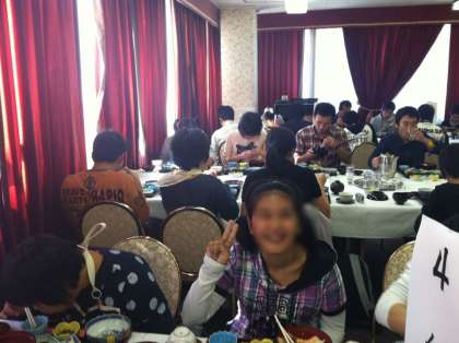 岡山の祭り寿司,魚がいっぱいです。みんな食べまくってます。最高!!