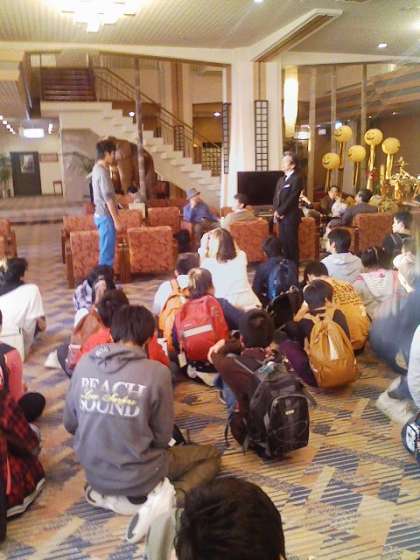 宿舎に到着しました。宿の方々に挨拶をしました。この後,夕食,入浴の後,レクリエーションです。楽しい夜が待っています。