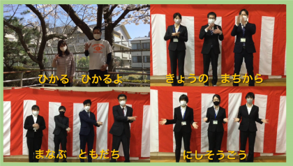 着任式に引き続き,前期始業式を行いました。新着任の先生方の動画を見ながら,校歌を静聴しました。学校先生からは,令和4年度のキーワード『笑顔・夢・挑戦』の発表があり,「夢や希望に向かって笑顔で挑戦していきましょう。」と令和4年度の目標についてのお話がありました。