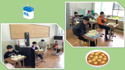 先週水曜から給食が始まりました。それぞれのクラスで,距離を保ちながら給食を食べています。日本食から海外の地方料理など,いろいろなメニューの献立が考えられていますので,安全に楽しく食事をしていきましょう。