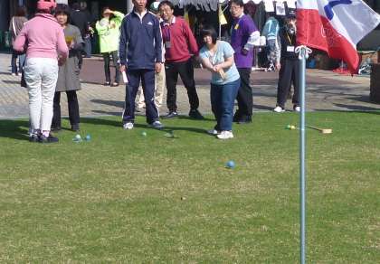 スポーツコーナーでは,桂坂山の手クラブの方々によるグラウンドゴルフや中学部の生徒によるペットボトルロケット,高等部の生徒による卓球バレーが行われました。