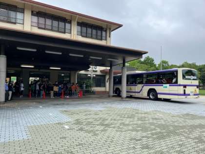 昨日の雨も上がり,先輩たちに見送られながら,元気よく校外学習に出かけました。