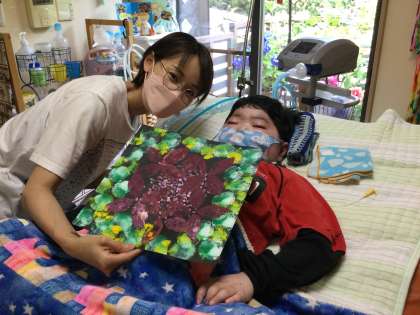 中学部2年生の訪問教育の様子です。種植えをしたり,スタンプであじさいの絵を描いたり,校外の散策を行いました。